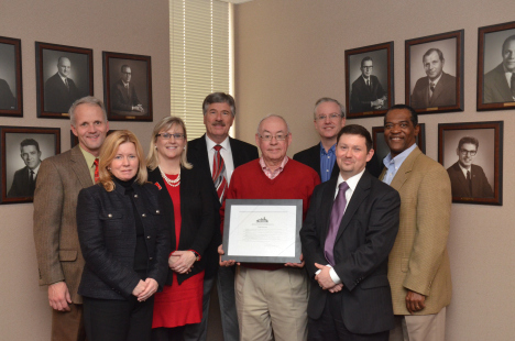 The 2013 REBIC Executive Committee presents a resolution to longtime…